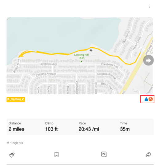 If your activity was recorded on Strava, your activity post will have a red Strava icon.